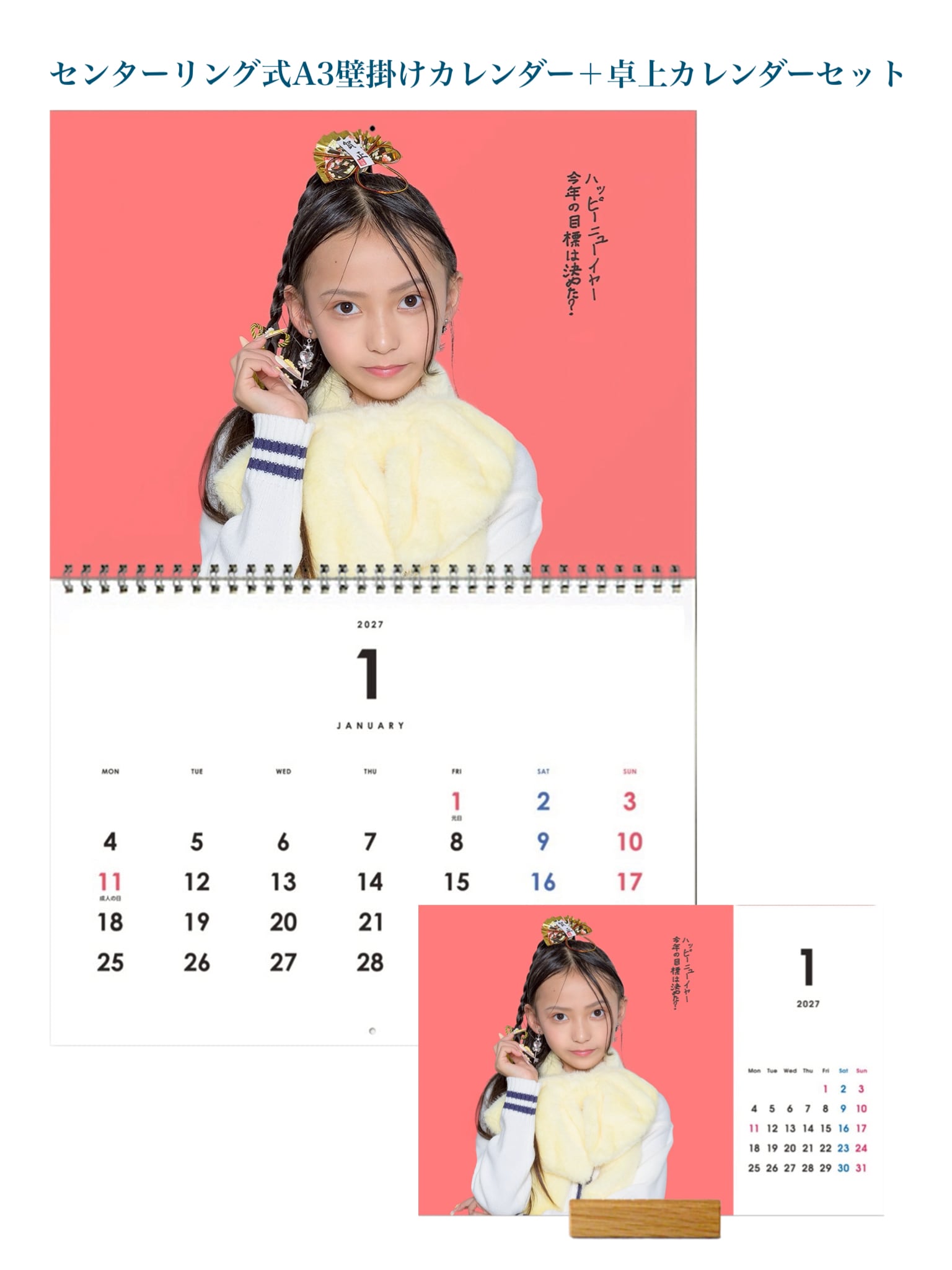②センターリング式A3壁掛けカレンダー+卓上カレンダーセット